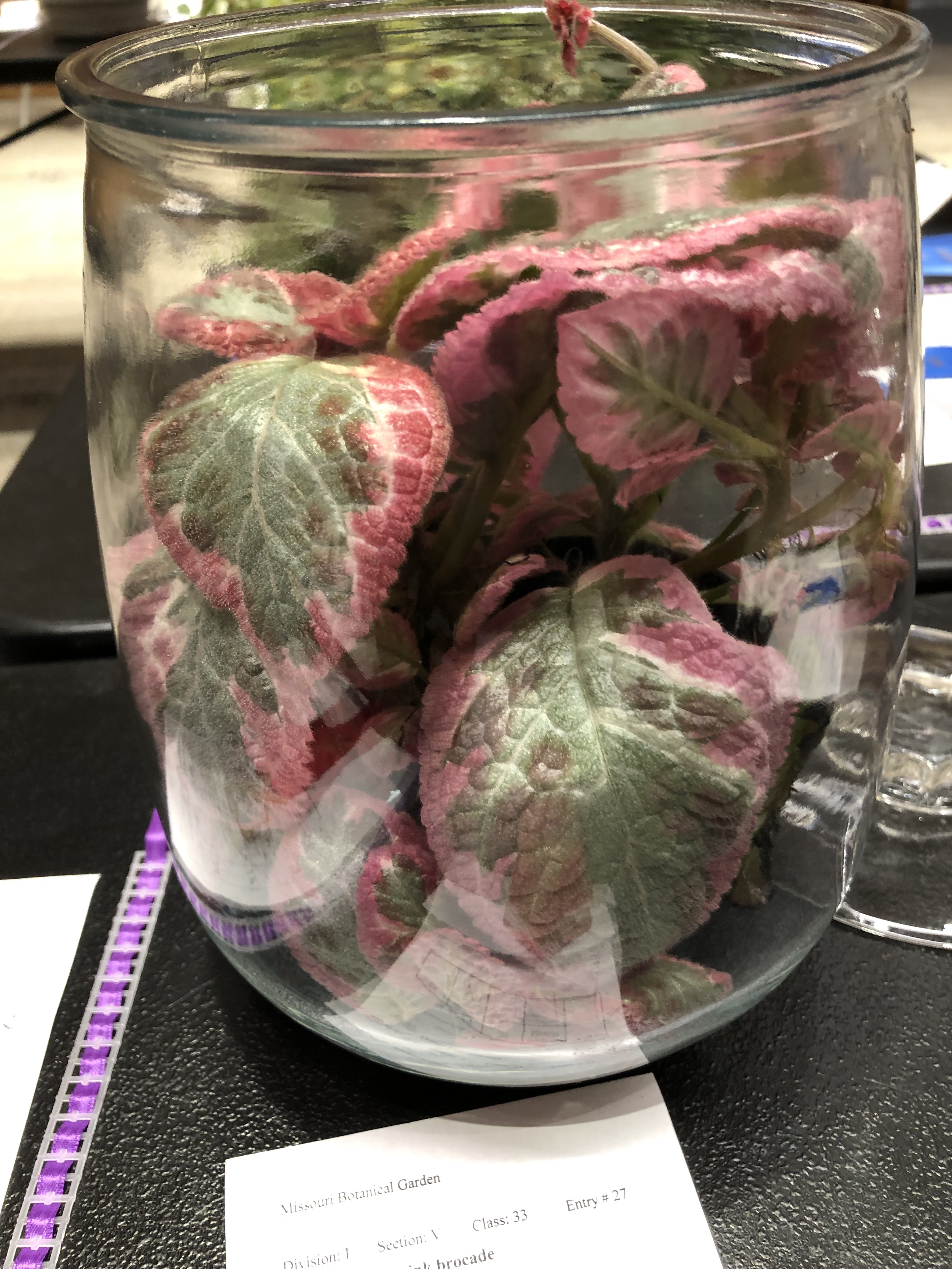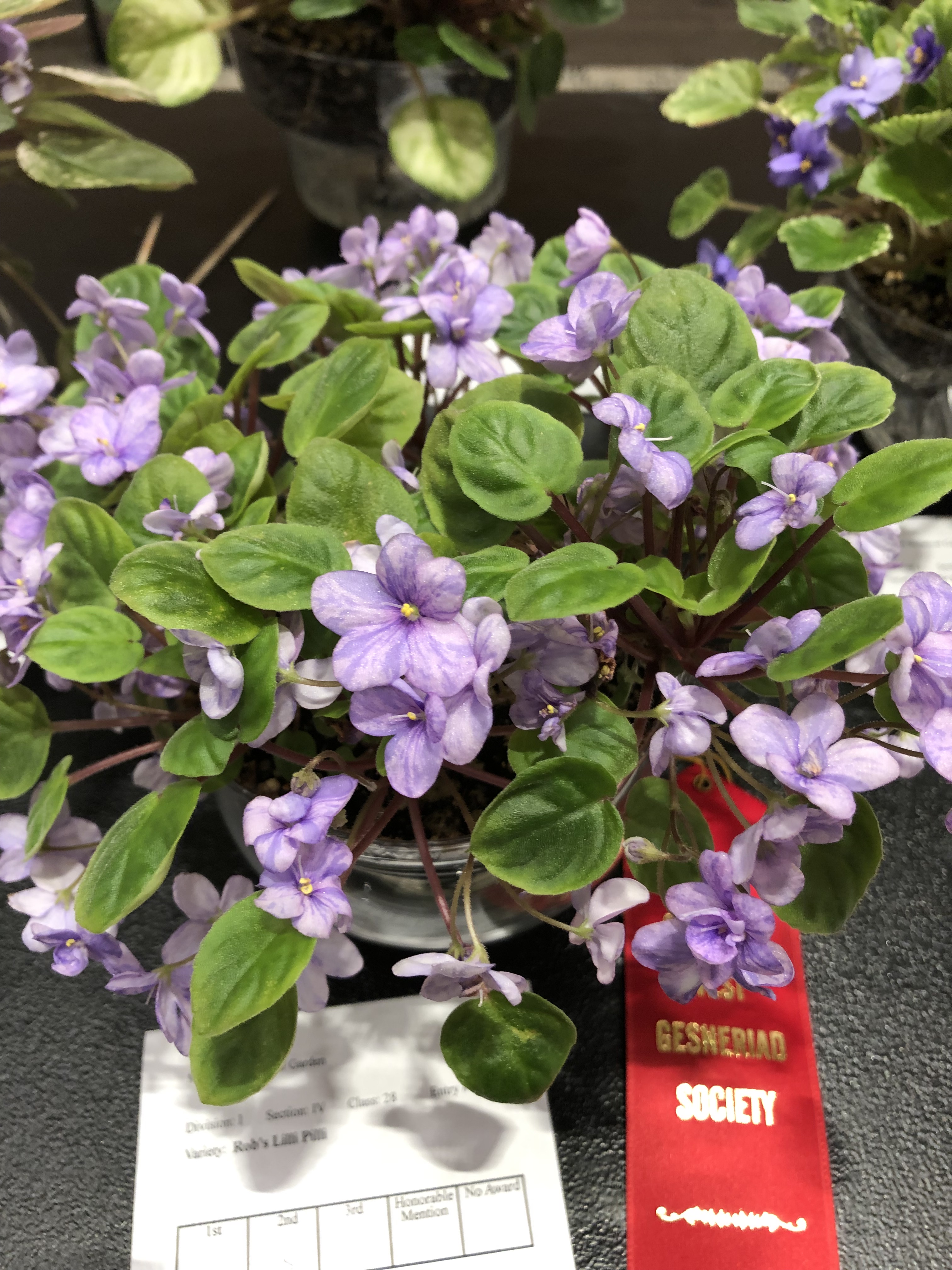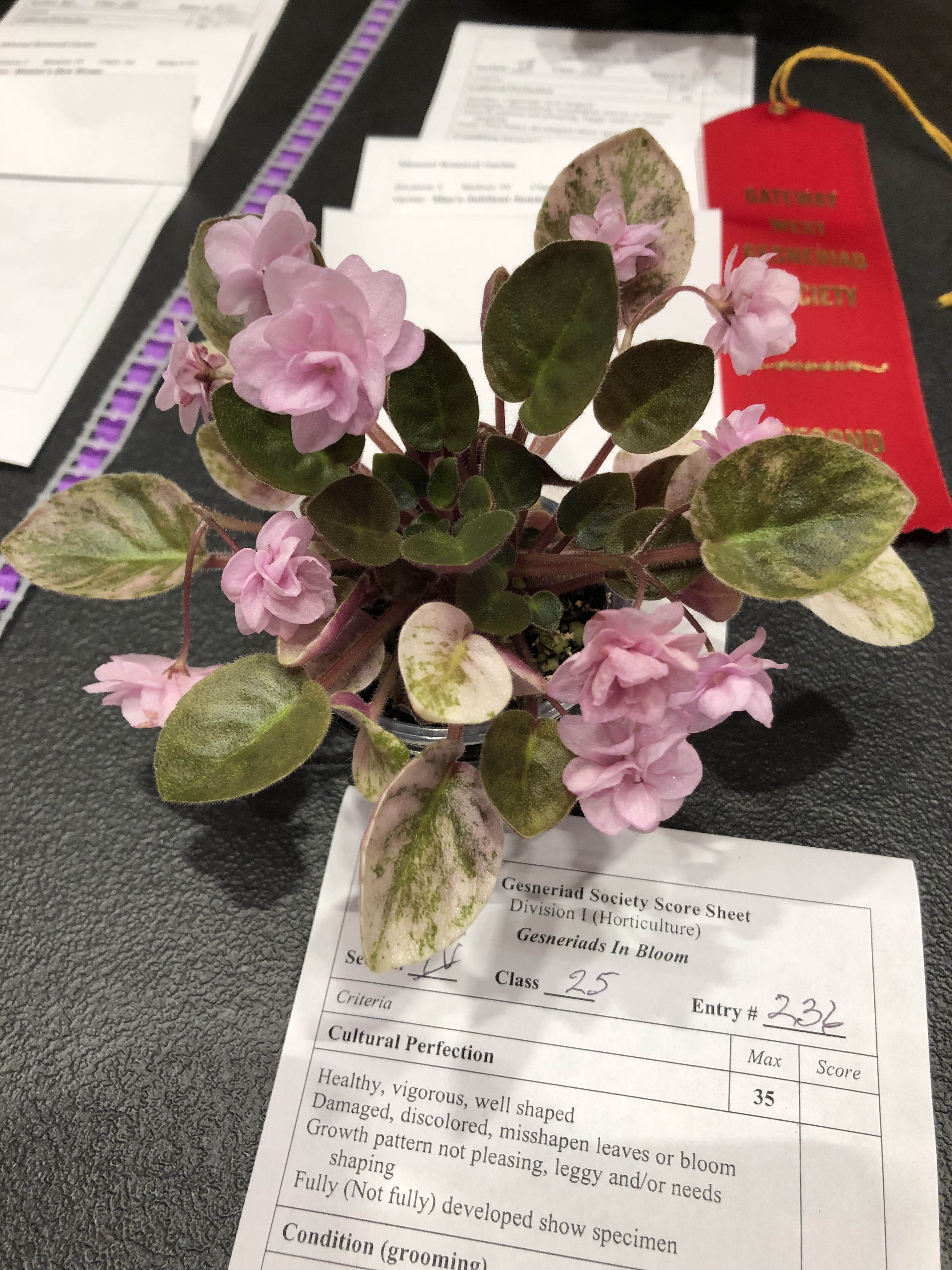 02-A-Sinningia ‘Gone Salmon Fishing’ 02-B-Sinningia ‘Mercury’ 02-C-Sinningia Roxy 05-A-Achimenes patens ‘Major’ Second Best in Show 07-A-Kohleria Bud’s Autumn Embers 07-B-Kohleria ‘Karl Lindberg’ 07-C-Kohleria ‘Bud’s Strawberry Shortcake’ 09-A-xSmithicodonia ‘Heartland’s Joy’ 10-A-Columnea Fujiyama 11-A-Alsobia Dianthiflora 11-B-Episcia hybrid 11-C-Episcia sport of Pink Smoke 13-A-Nematanthus ‘Tropicana’ 14-A-Gesneria ‘Flash Dance’ 16-A-Metapetrocosmea Tamiana 17-A-Petrocosmea rotundifolia 18-A-Primulina loki 18-B-Primulina ‘Silver Surfer’ 18-C-Primulina ‘Silver Surfer’ 18-D-Primulina jv young love 18-E-Primulina tabacum 19-A-Primulina ‘Loki’ 22-A-Cajun’s Code Blue 22-B-Jersey Cloud Chaser 23-A-Saintpaulia ‘Key Lime Treat’ 23-B-Saintpaulia Harmony’s ‘Little Stinker’ 24-A-Saintpaulia Hunter’s Amazing Aviana 24-B-Saintpaulia Hunter’s Touch of Class 24-C-Saintpaulia Morgan’s Sophronia 24-D-Saintpaulia Lavender Fairy 24-E-Saintpaulia Oksana 24-F-Saintpaulia Hunter’s Dew Drops 25-A-Saintpaulia Trinket O’ Pink 25-B-Saintpaulia Pride of Columbus 25-C-Saintpaulia Mac’s Jubilant Jamboree 25-D-Saintpaulia Shirl’s Peachy Pink 26-A-Saintpaulia Mac’s Pizza Pizzicato 26-B-Saintpaulia Cambridge Missie 26-C-Saintpaulia Morgan’s Ivy League 26-D-Saintpaulia Precious Red 26-E-Saintpaulia Jolly Orchid 26-F-Saintpaulia Aly’s Blizzard Bunny 26-G-Saintpaulia Rob’s Loose Noodle 27-A-Saintpaulia Rob’s June Bug 27-B-Saintpaulia Rob’s Jitterbug 27-C-Saintpaulia Shirl’s Red Sky 27-D-Saintpaulia Jolly Jubilee 27-E-Saintpaulia Cajun’s Lil Joy 27-F-Saintpaulia Imp’s Angel Wings 27-G-Saintpaulia Sky Bells 28-A-Saintpaulia Rob’s Lilli Pilli 28-B-Saintpaulia Ramblin’ Amethyst 28-C-Saintpaulia Rechka Jenisej 28-D-Saintpaulia Ramblin’ Dots 28-E-Saintpaulia Scuba Diver 28-F-Saintpaulia Fun Trail 28-G- Saintpaulia Cajun’s McKenna Trail 28-H-Saintpaulia Pacific Pearl 28-I-Saintpaulia Candy Fountain 28-J-Saintpaulia Vallarta Campanas Moradas 28-K-Saintpaulia Rob’s Vanilla Trail 29-A-Streptocarpus ‘DS-Kaleidoscope’ 29-B-Streptocarpus ‘DS-2640 Purple Sun’ 32-A-Episcia hybrid (pinkpurple leaves) 32-B-Episcia Pink Acajou 32-C-Episcia hybrid 33-A-Episcia ‘Pink Brocade’ 33-B-Episcia ‘Picasso’ 33-C-Episcia ‘Pink Brocade’ Third Best in Show 34-A-Primulina linearicalyx 36-A-Columnea Hirta’Light prince’ Best in Show 37-A-Petrocosmea ‘Shortnin’ Bread’ 37-B-Petrocosmea flaccaide 37-C-Smithiantha ‘Pat’s Pet Gorilla’ 44-A- Petrocosmea rotundifolia, Petrocosmea flaccaide, Petrocosmea ‘Chidori’ 47-A- Tray Landscape 47-B-Tray Landscape 49-A- Natural Garden 49-B- Natural Garden 50-A-‘The Tale of Peter Rabbit’ 50-B-‘The Tale of Peter Rabbit’ 51-A-‘The Little Mermaid’ 53-A-‘My Favorite Fairy Tale’ Best in Show -Design 54-A-‘Sleeping Beauty’ 55-A-Color print of a whole Gesneriad plant 56-A-Color print of parts of a Gesneriad plant 61-A- Educational Poster